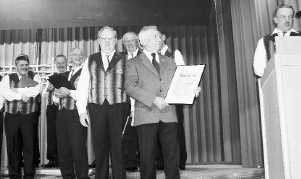 Ehemaliger "Eintracht"-Vorsitzender 55 Jahre aktiver Sänger - Tosender Applaus für Wenche-Maria Jentoft Beim Frühjahrskonzert des Gesangvereins "Eintracht" boten drei Chöre ein breitgefächertes Programm in der blumengeschmückten Aubachhalle. Frühlingsweisen, Schlager und Opernmelodien wurden von den Besuchern mit reichlich Beifall bedacht. Der Vorsitzende Martin Springindschmitten konnte unter den Gästen auch den Vorsitzenden des Schwarzwald-Gau-Sängerbundes, Wilfried Rothmund, den stellvertretenden Ortsvorsteher Hermann Strohmayer und Adolf Baumann als Bürgermeisterstellvertreter begrüßen. Letzterer hatte an diesem Abend gleich drei Funktion, er war auch Sänger und führte durchs Programm. |